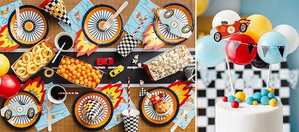 Ein Rennauto zu fahren ist für viele kleine Jungen aber auch Mädchen ein Traum. Kindergeburtstagsparty feiern mit Rennauto Deko.