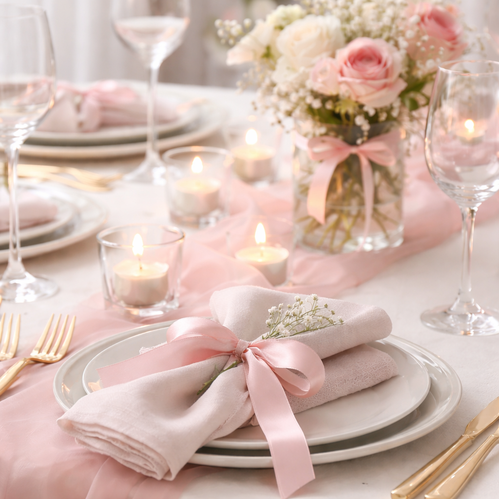 Beim Tischdecken sorgt Satinband für Struktur, Ruhe und feine Akzente. Es ersetzt klassische Deko-Elemente oder ergänzt sie auf dezente Weise.