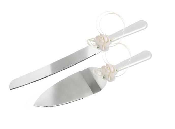 Tortenbesteck mit eine Rose in Elfenbein Farbe 2-teiliges Tortenbesteck mit Tortenmesser und Tortenheber. Für Hochzeit oder jeden Anlass mit eine schöne Torte.