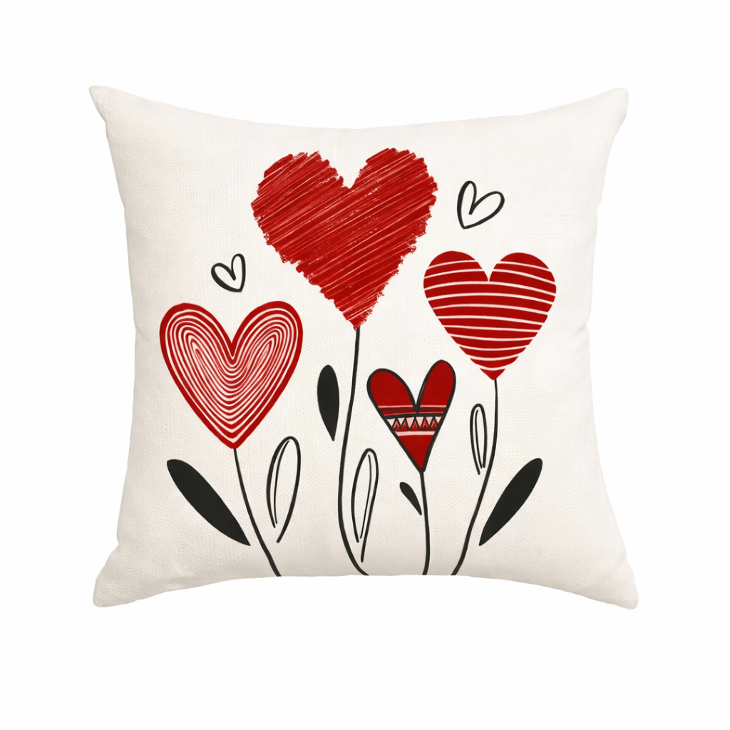 Dieser dekorative Kissenbezug mit stilvollen roten Herzmotiven bringt sofort eine warme, liebevolle Atmosphäre in dein Zuhause. Das moderne Herzdesign kombiniert verspielte Linien, klare Formen und kräftige Farben – perfekt für romantische Akzente im Wohnraum.