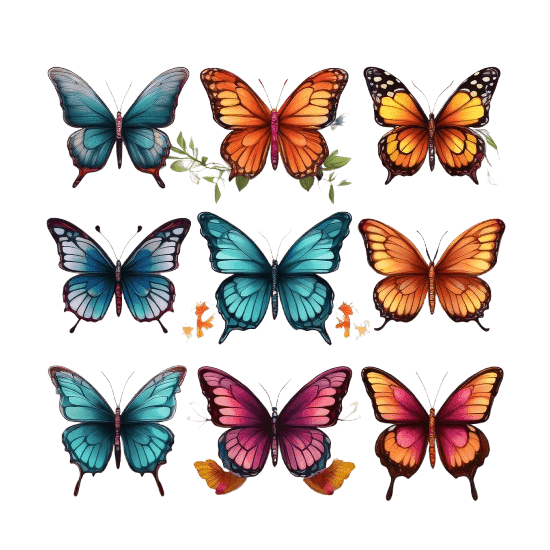 - Set mit mehreren bunten Schmetterlingen