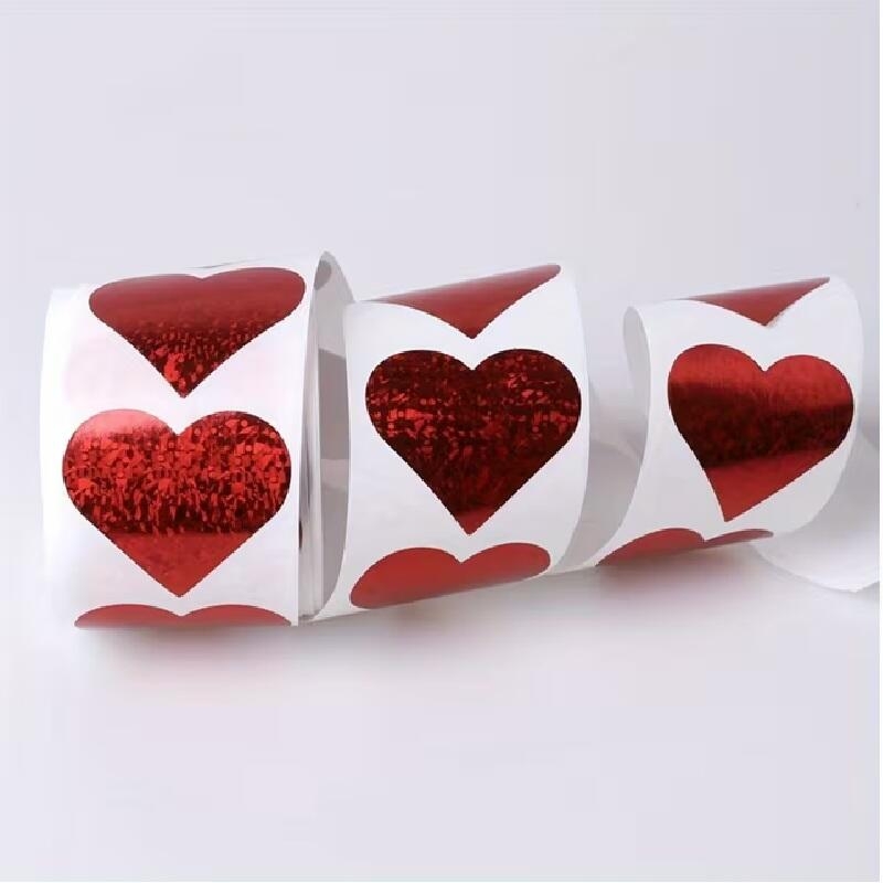 Autocollants cœur rouges pailletés – 50 pièces – Ø 2,54 cm