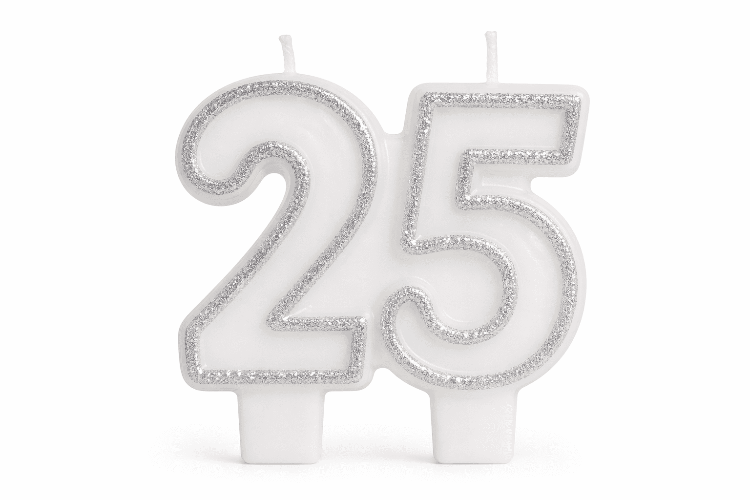 Geburtstagskerze Zahl 25 – Silber & Weiss für stilvolle Momente