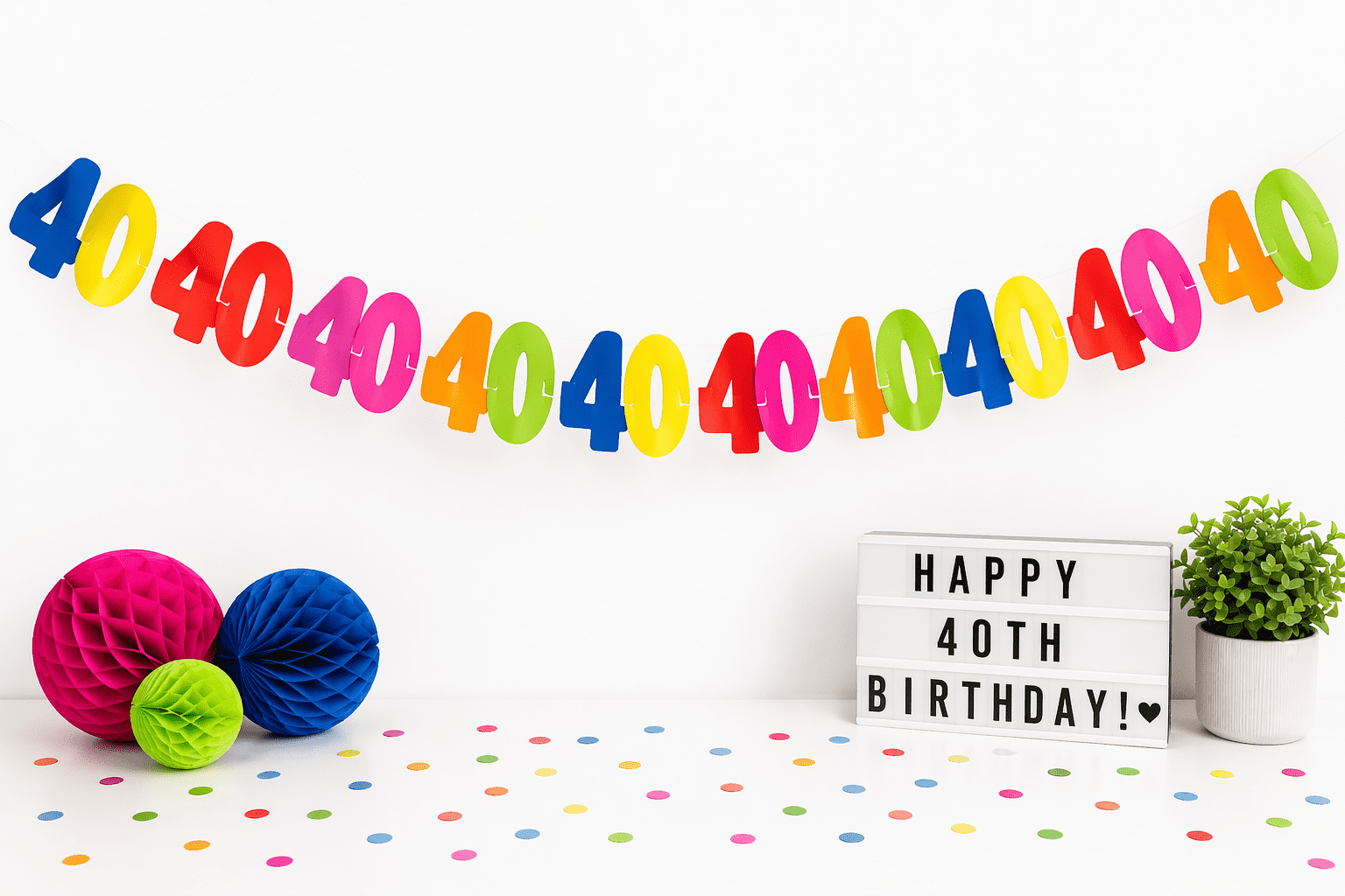 Für ein harmonisches Gesamtbild kombinierst du die Girlande mit passender 40. Geburtstag Deko, farbenfrohen Ballons zum 40. und kreativen Geschenken.