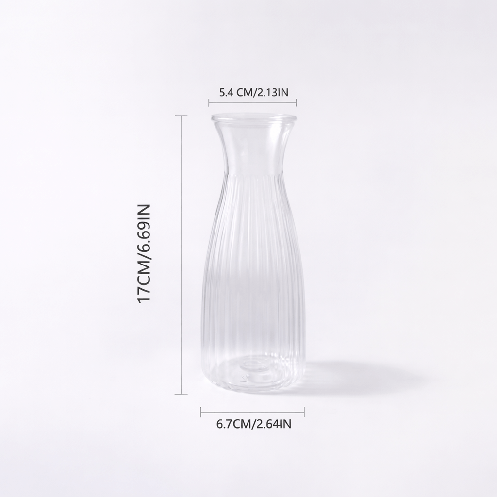 Diese stilvollen Vasen in Glasoptik bestehen aus robustem Kunststoff und verbinden elegantes Design mit praktischer Alltagstauglichkeit. Die feine Rillenstruktur sorgt für eine edle Optik und ein schönes Lichtspiel – ideal für moderne, romantische oder natürliche Dekokonzepte.